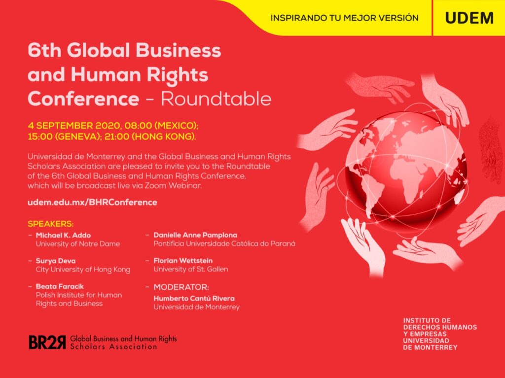 W dniu 4 września 2020 r., prezeska PIHRB, Beata Faracik, wzięła udział w Conference Roundtable podczas 6th Global Business and Human Rights Conference, zorganizowanej przez Uniwersytet Monterrey w Meksyku oraz the Global Business and Human Rights Scholars Association.