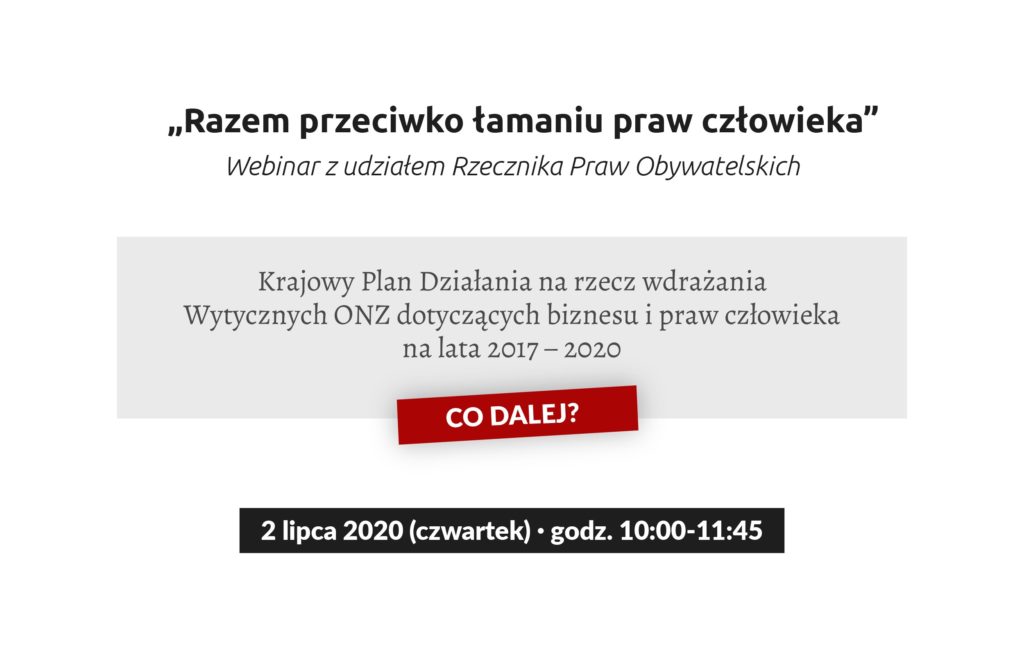 o efektywności wdrożenia aktualnego Krajowego Planu Działań dot. Biznesu i Praw Człowieka (dalej KPD). A także o tym jakie kwestie powinny zostać ujęte w kolejnym KPD, po 2021 r.