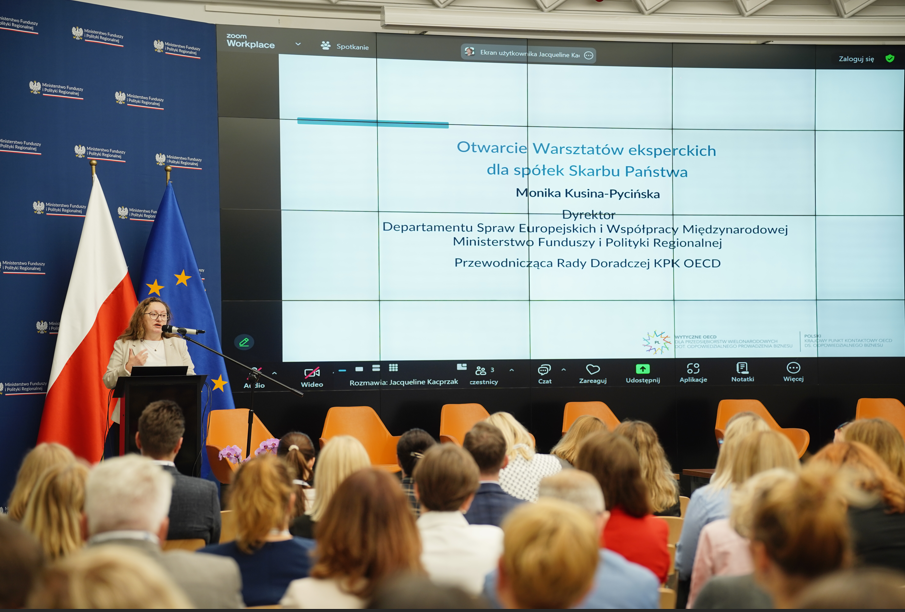 11 lipca 2025 r. w siedzibie Ministerstwa Funduszy i Polityki Regionalnej (MFIPR) odbyły się warsztaty eksperckie dla spółek z udziałem Skarbu Państwa pt. „Należyta staranność w odpowiedzialnym zarządzaniu – obowiązki spółek”, zorganizowane przez MFIPR, Ministerstwo Aktywów Państwowych oraz Krajowy Punkt Kontaktowy OECD w Polsce. W wydarzeniu uczestniczyło około 130 przedstawicieli zarządów i pracowników spółek. W warsztatach wzięli udział przedstawiciele różnych sektorów gospodarki. Najliczniejszą grupę stanowili uczestnicy z sektora wydobywczego (34%) oraz rolno-spożywczego (32%). Pozostałe sektory reprezentowały spółki z obszaru finansów (8%), budownictwa (4%), ICT (8%), przemysłu chemicznego i farmaceutycznego (9%) oraz innych branż (5%), takich jak transport, hotelarstwo, branża hazardowa, ochrona osób i mienia, przemysł ciężki, nieruchomości, handel detaliczny oraz turystyka. Uczestnicy reprezentowali różne stanowiska i działy w swoich spółkach, co zapewniło wszechstronny wymiar dyskusji i wymiany doświadczeń.